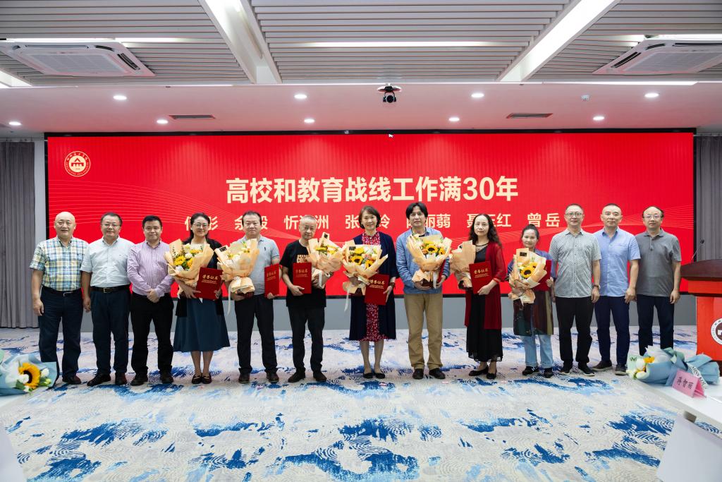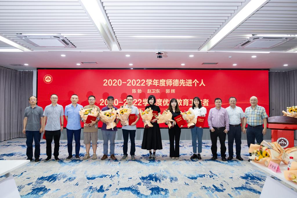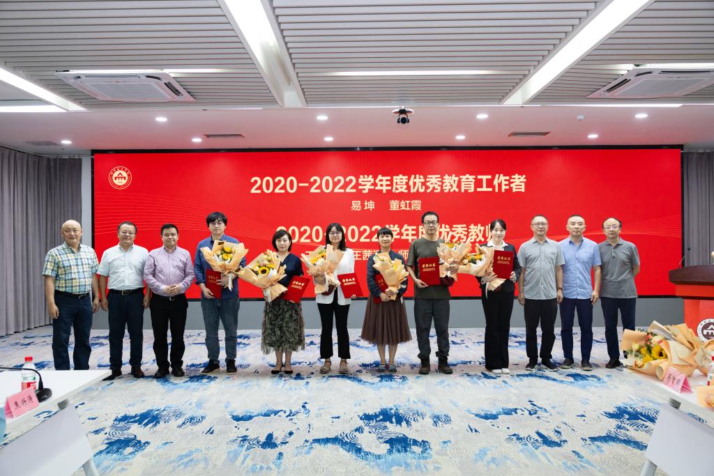 党委副书记左益宣读了去年教师节以来入选市级及以上的专家人才和集体名单。副校长焦兴涛宣读了2020—2022学年度优秀教师、优秀教育工作者、师德先进个人、师德先进集体的表彰决定。全体校领导为获得荣誉的教师、集体以及在高校和教育战线上工作满30年的教职工颁奖并合影。