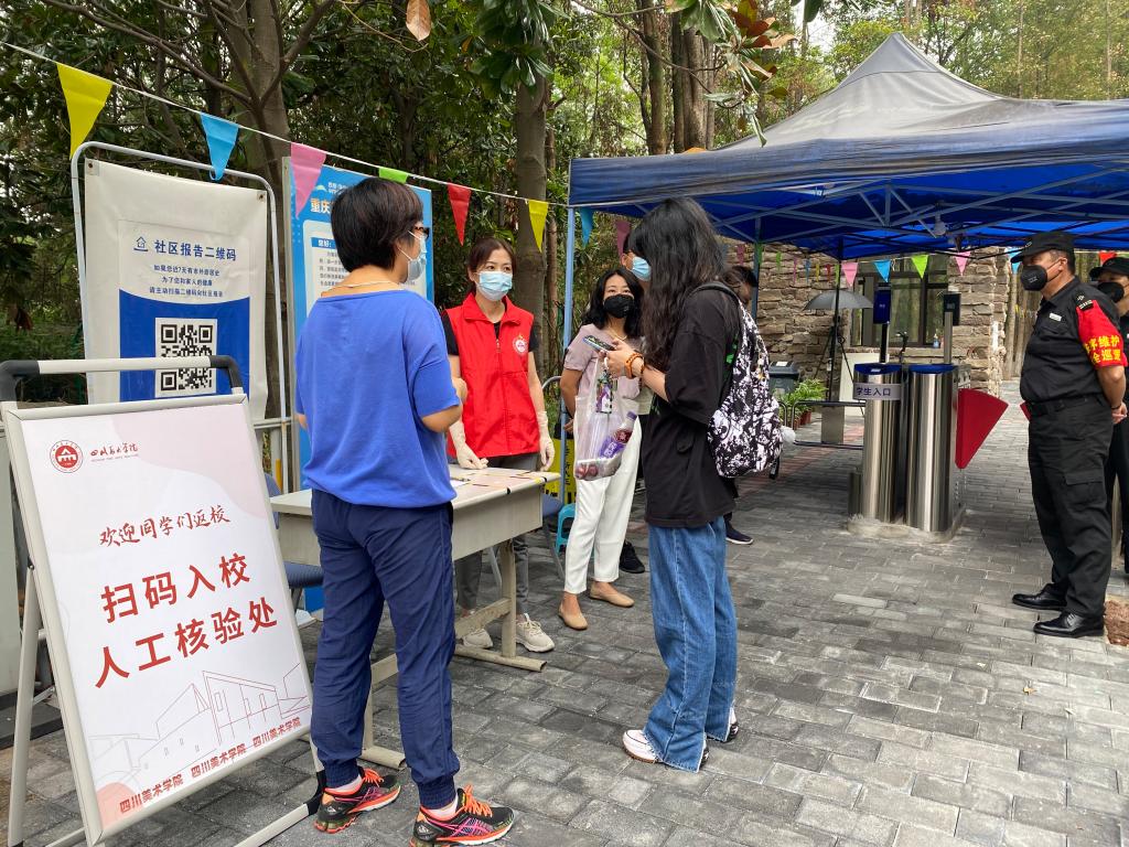 16日当天,学校早早在各进校入口拉起了欢迎川美学子返校的标语横幅;校领导也一大早来到大学城校区的西门、南门和黄桷坪校区的大门,迎接市外同学们的归来;教职工志愿者们一如既往地在各校门口热心帮助同学们返校报到,让同学们再次感受到学校浓浓的关怀和家一般的温暖。