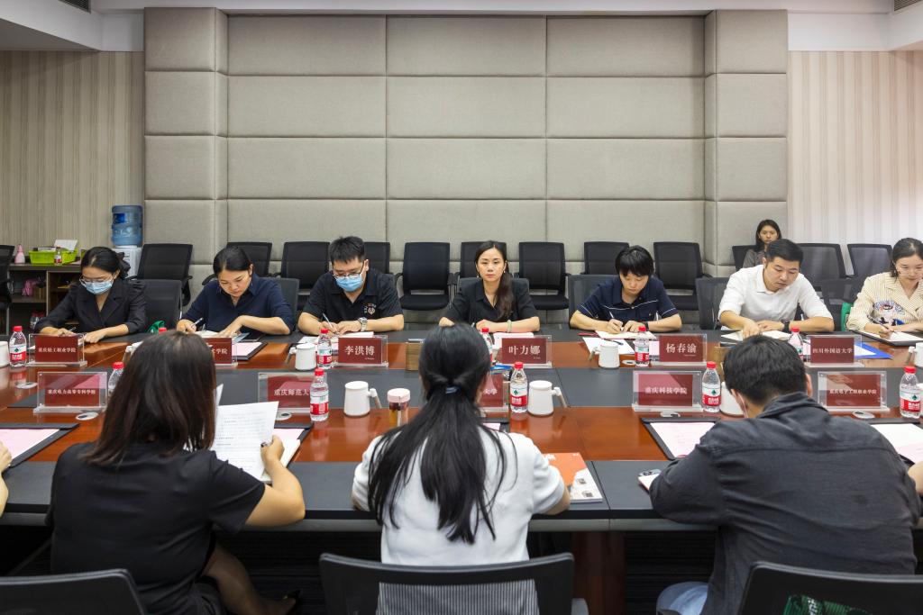 叶力娜一行首先在我校美术馆调研了师生艺术作品创作情况。座谈会上,重庆医科大学、重庆师范大学、四川外国语大学、 、重庆科技学院、重庆电力高等专科学校、重庆电子工程职业学院、重庆城市管理职业学院、重庆海联职业技术学院、重庆建筑科技职业学院、重庆轻工职业学院等11所高校团委负责人,围绕“加强自身建设,全面从严治团”作了发言。