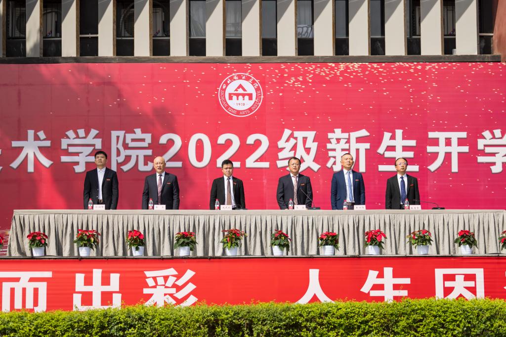 庞茂琨校长在典礼上讲话。他用“大、学、生”三个字表达了对2022级新同学们的三点希望:一是明大德、立大志。要自觉践行社会主义核心价值观,做到品德润身、公德善心、大德铸魂,成为有大爱大德大情怀的人。要自觉肩负强国使命,立鸿鹄之志,做奋斗者,把文艺创作写到民族复兴的历史上、写在人民奋斗的征程中;二是学会学习、学会共处。在大学,大家要坚持全面、系统学习,要做艺术家,先做文化人。要学会与自己、与他人、与自然和谐相处;三是全面理解人生、正确理解生命。要去扩充自己内在的生命力,激发自己精神的活力、感受生命的能力,始终对生命充满热爱。要去提升自己的艺术生命,用艺术的眼光去观看人生和世界的美,去创造和传播美。