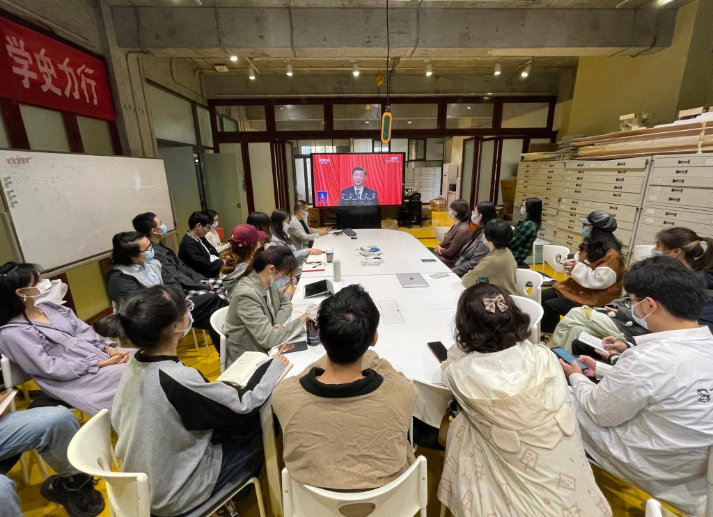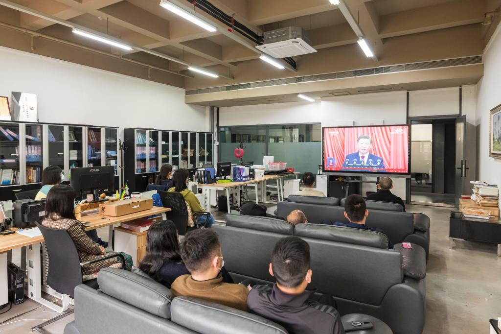 学校教工食堂、学生食堂同步播放了中央广播电视总台对党的二十大开幕会的直播。同时,学校根据疫情防控要求,鼓励广大师生通过电视、广播、网络和手机“学习强国”平台等方式自主观看。