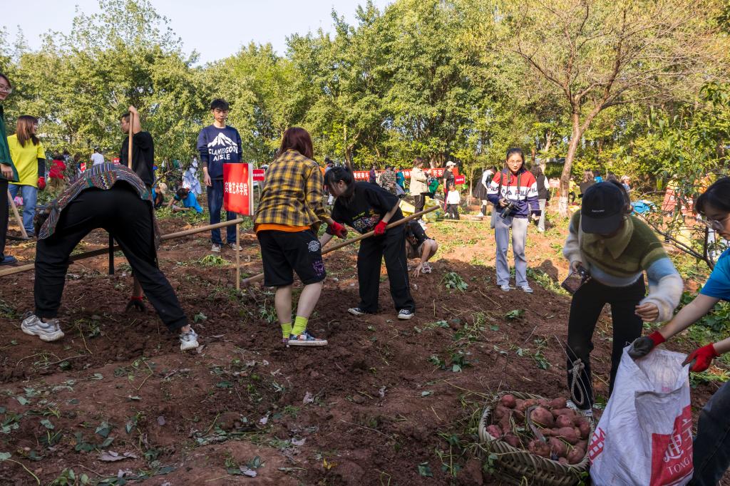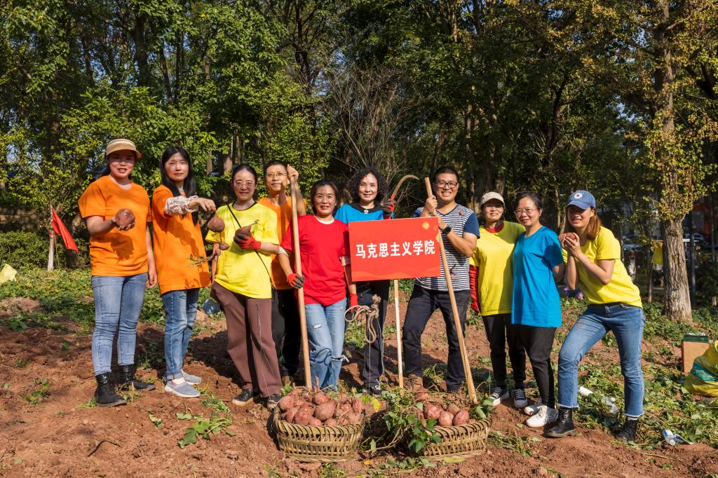 习近平总书记在党的二十大报告中强调“坚持尊重劳动、尊重知识、尊重人才、尊重创造”,号召“在全社会弘扬劳动精神、奋斗精神、奉献精神、创造精神、勤俭节约精神”。为深入贯彻党的二十大精神,11月2日下午,学校在虎溪校区荷塘和红薯地举行“向劳动致敬”农耕文化体验活动。学校党委书记唐青阳、党委副书记左益、副校长张杰、纪委书记黄云、副校长张勇华出席活动开幕式。唐青阳宣布活动开幕。左益主持开幕式。