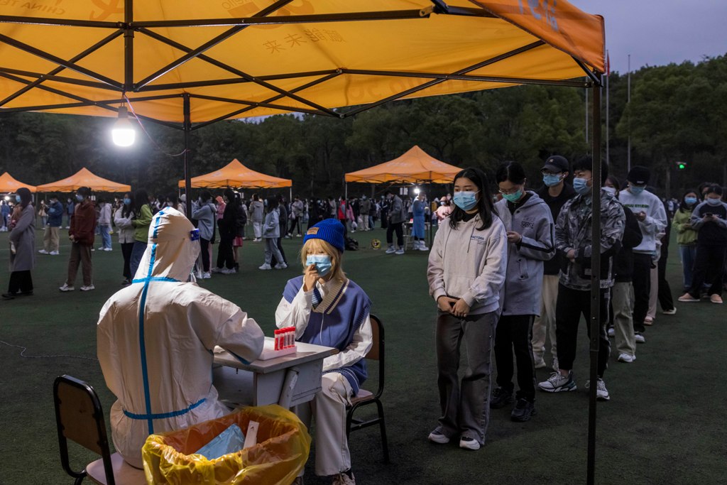 下午17:30起,同学们陆陆续续来到操场,依次有序排队,参加核酸检测。老师和学生志愿者们已经早早到现场做好准备,维护好现场秩序,为同学们提供周到服务。