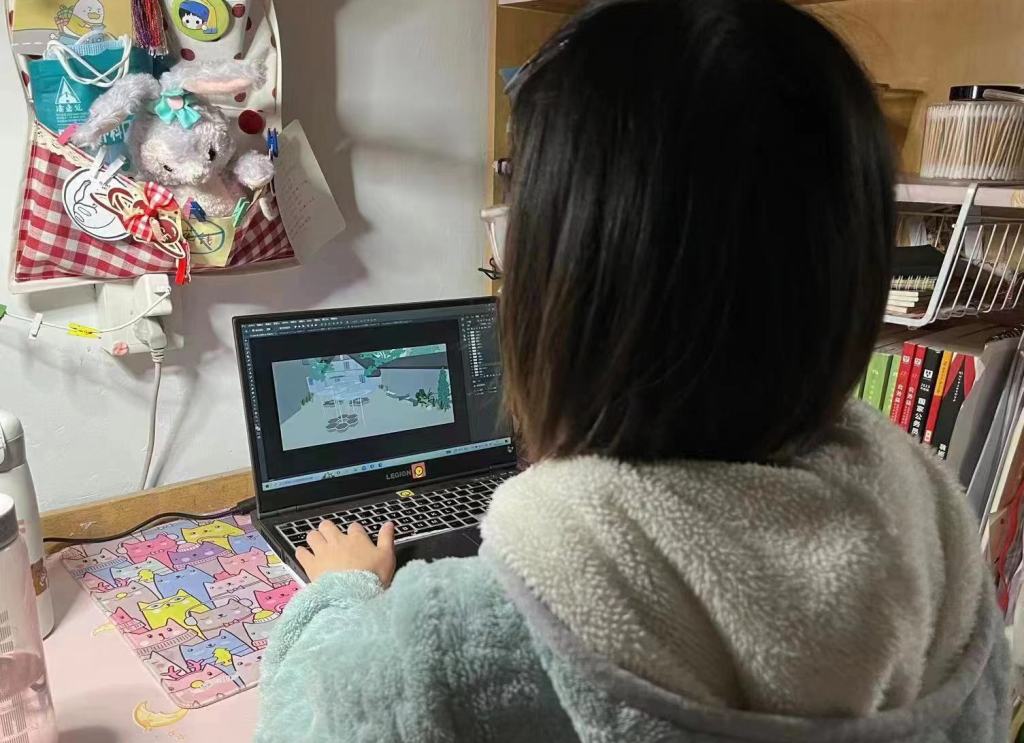 早上8:30,同学们已洗漱完毕、用完早餐,提前坐到寝室书桌前面,打开电脑,开始上网课,与任课老师互动,课后认真完成、按时提交作业。