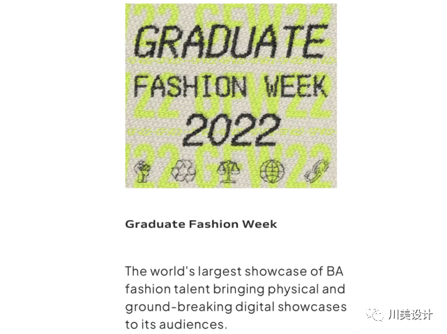 伦敦国际大学生时装周(GRADUATE FASHION WEEK)是世界上最大的本科毕业生的时装展,作为世界顶尖时装专业及高校服装设计发布周,也是检验服装设计教育成果的国际平台,该活动自1991年创办以来,至今已成功举办31届,有超过95所最具影响力和创新性的英国本土及国际院校参展。它提供了一个极好的机会让我们集中领略到来自26个不同时尚领域的最前沿的人才培养成果。时装周每年六月举行,吸引数来自全球的嘉宾,开展了包括时装秀、大学展览、讲座、大师班和来自时尚与零售业知名人物的工作坊。它代表了创意设计人才的未来,每年展示了3500多名最优秀的时尚毕业生的时尚成果。