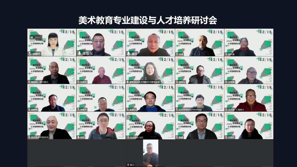 艺术教育学院承办的“美术教育专业建设与人才培养研讨会”顺利召开。本次会议是美术教育今年成功升格为本科专业之后,首次举办的全国性专业建设研讨会。共有来自12个省市16所美术教育办学高校的20余位专家学者相聚“云端”,共谋美术教育专业发展之道,共商美术教育人才培养大计。