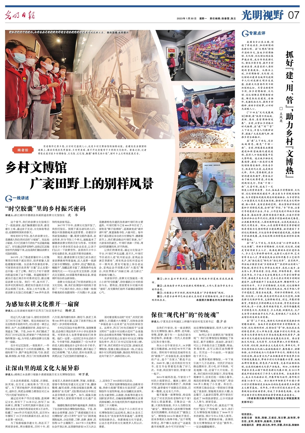1月30日,《光明日报》( 2023年1月30日 07版)“光明视野”刊登了我校马克思主义学院教师王凤英的文章《抓好“建、用、管”,助力乡村“文博热”》。