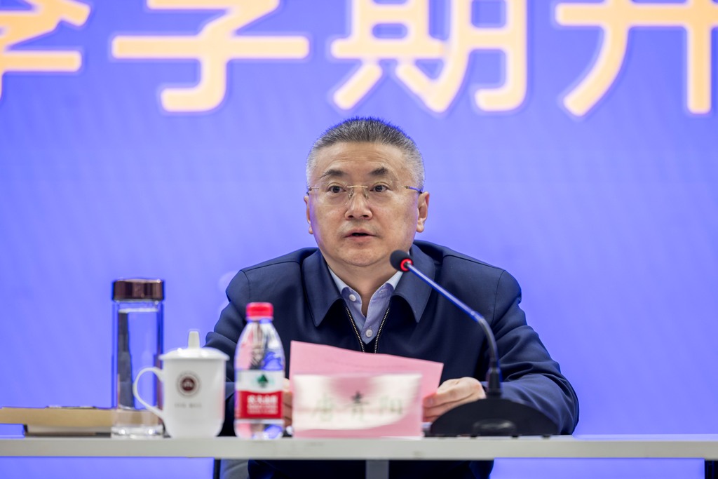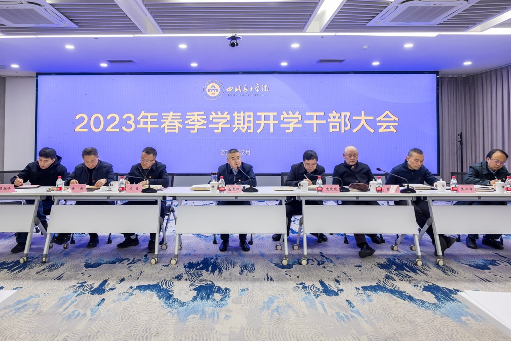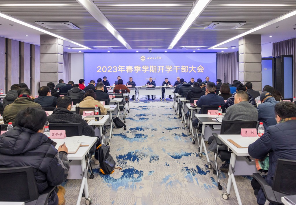2023年2月19日下午,学校在五会议室召开了春季学期开学干部大会。党委书记唐青阳、校长庞茂琨出席会议并讲话。全体校领导出席会议。