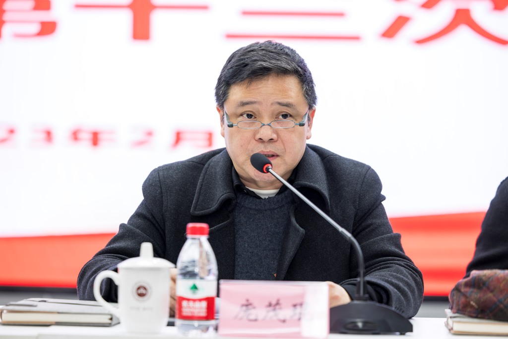 庞茂琨对学校2023年工作要点作了说明。2023年是全面贯彻落实党的二十大精神的开局之年,也是学校召开第三次党员代表大会、全面实现“十四五”规划中期目标的关键之年。学校总体工作要求是,坚持以习近平新时代中国特色社会主义思想为指导,全面贯彻落实党的二十大精神,大力弘扬伟大建党精神,紧扣“作风建设年”工作主题,进一步组织动员全校广大党员干部和师生员工,凝心聚力,实干笃行,夯基固本,乘势而上,坚定不移朝着建设“国内一流、国际知名”高等美术院校目标勇毅前进。