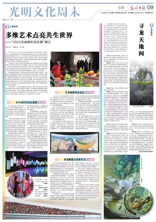 2月12日,《光明日报》(2023年2月12日09版)“光明文化周末”文章《寻龙天地间》刊登了我校“互动媒体实验班”2017级学生吴俊达的毕业作品《声律启蒙》,该作品同时还获得第18届中国动漫金龙奖最佳插画奖金奖。
