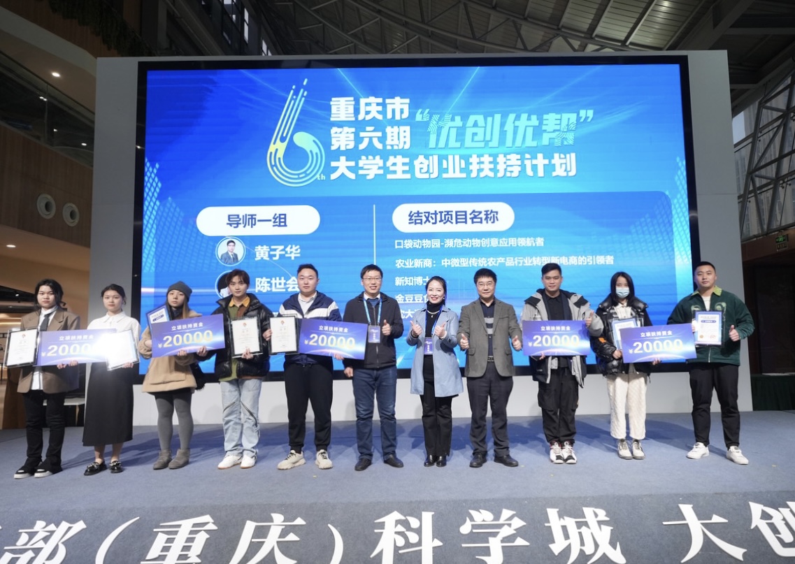 3月2日,由重庆市教委、重庆市人力社保局主办的第六期“优创优帮”大学生创业扶持计划市级总评审活动,在西部(重庆)科学城大创谷梦花园举行。我校影视动画学院本科生王诚负责的《口袋动物园》项目,以排名第三的高分成功结对,实现精准帮扶,这也是我校连续6年获得“优创优帮”项目结对。同时,学生处陈麟老师被聘为重庆市第六期“优创优帮”大学生创业扶持计划帮扶导师。