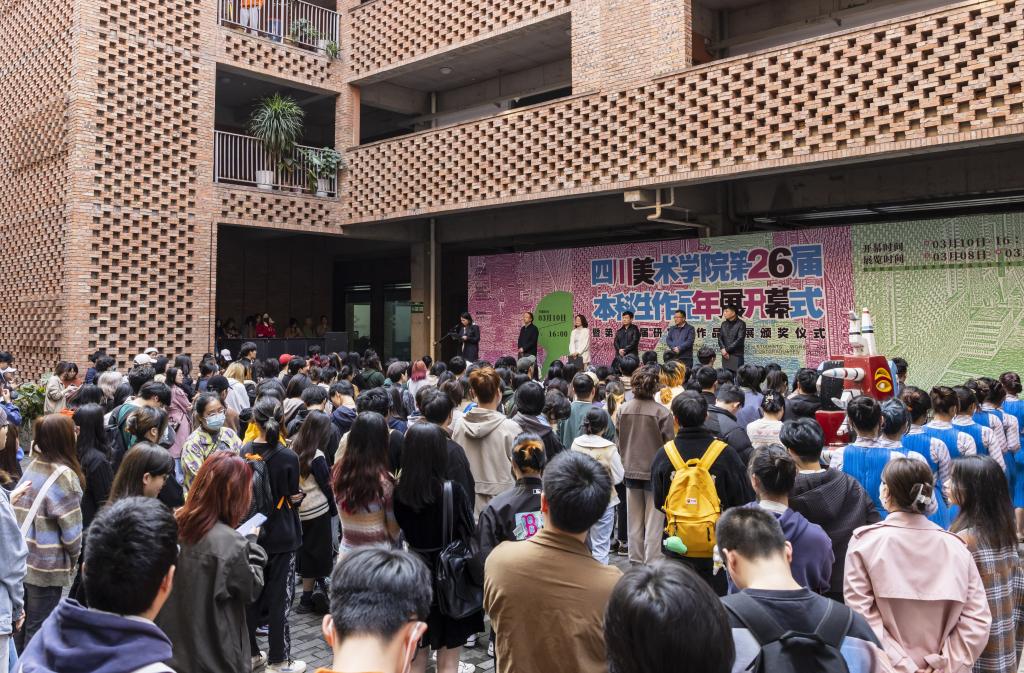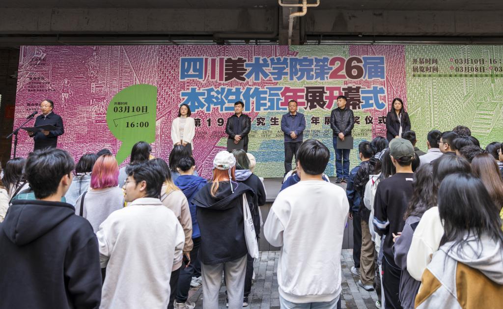 段胜峰在致辞中表示,二十六年来,年展一直作为学校一个以创作带动教学、提高学生创作水平、挖掘推出更多优秀作品和创作人才与学术交流的重要平台。鼓励同学们探索自己边界的可能,打破创作局限,与时代、与大众、与人民共鸣。他指出,青年艺术工作者要积极担当社会责任,用艺术的感染力和影响力宣传贯彻党的二十大精神,展现川美师生永远跟党走,奋进新征程的决心与力量。在实现第二个百年奋斗目标的征程上,创作出无愧于时代的作品,书写 新辉煌!