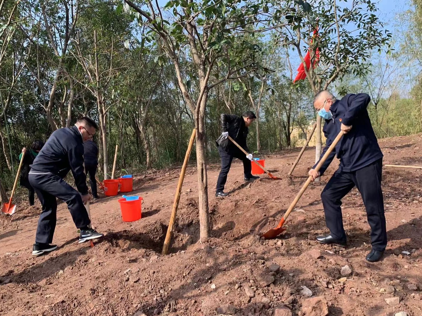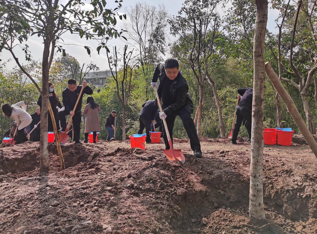 为深学笃用习近平生态文明思想,贯彻落实习近平总书记将重庆建设成创造高品质生活之城、山清水秀美丽之地的指示要求,巩固“全国绿化模范单位”建设成果,持续打造绿色生态艺术校园,3月13日上午,机关党委国资财务处党支部、基建后勤处党支部联合开展“履行植树义务 共建美丽中国”主题党日活动,全体在家校领导、国资财务处党支部和基建后勤处党支部全体党员参加了植树活动。