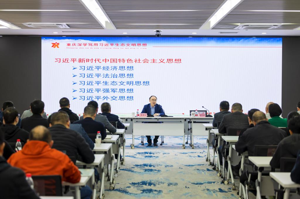 报告会上,吴昌凡从习近平生态文明思想的发展脉络、重大意义、深刻内涵和重庆实践等角度,阐明了深学笃用习近平生态文明思想、坚持走路色绿色发展之路,持之以恒推动生态文明建设的现实意义和深远影响,深刻指出了是生态文明建设是关乎中华民族永续发展的根本大计。吴昌凡指出,习近平生态文明思想,是坚持把马克思主义基本原理同中国生态文明建设实践相结合、同中华优秀传统生态文化相结合,马克思主义中国化时代化的最新成果,是中华文化和中国精神的时代精华。他强调,“生态兴则文明兴”,生态环境是关系党的使命宗旨的重大政治问题,也是关系民生的重大社会问题,要坚持把建设美丽中国转化为全体人民自觉行动。吴昌凡表示, 近年来市委、市政府紧紧围绕把习近平总书记殷殷嘱托全面落实在重庆大地上这条主线,坚持以全局谋划一域、以一域服务全局,坚定不移贯彻绿水青山就是金山银山的理念,坚持走生态优先、绿色发展道路,推动山清水秀美丽之地建设取得明显成效。他表示,下一步要持续深学笃用习近平生态文明思想,奋力谱写山清水秀美丽之地建设新篇章。