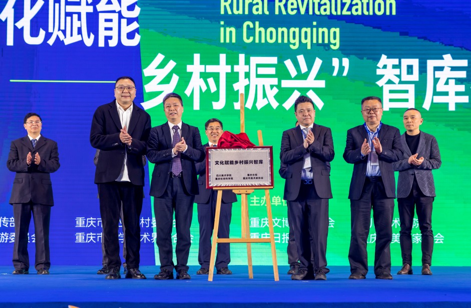 开幕式上举行了“文化赋能乡村振兴”智库成立及揭牌仪式。党的十九大以来,中央多次要求“加强中国特色新型智库建设”,新型智库可以发挥联系广泛、智力密集、机制灵活的优势。为此, 、重庆日报、重庆社会科学院、重庆美术家协会联合发起成立“文化赋能乡村振兴”新型智库,以促进乡村文化理论研究与社会实践的融合,为乡村文化发展集聚国际国内专业资源,助力乡村文化繁荣和乡村文化产业的发展。