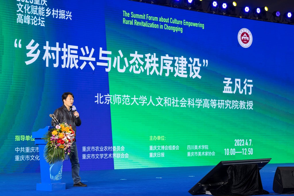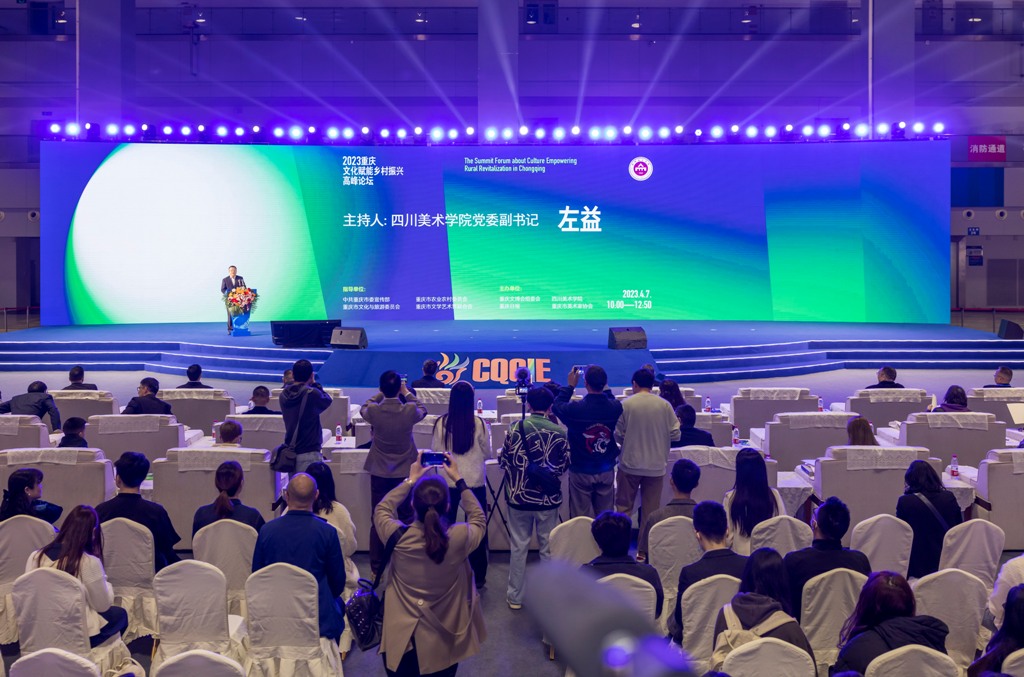 4月7日,第十一届重庆国际文化产业博览会在重庆国际会议展览中心开幕。其中,由重庆文博会组委会、重庆日报、 、重庆市美术家协会共同主办的“2023重庆文化赋能乡村振兴高峰论坛”,作为本届重庆文博会主论坛,于当日上午10点开幕。论坛围绕乡村振兴的五大振兴任务,探讨文化赋能乡村振兴的理论研究与实践成果。来自全国的6位专家学者、优秀企业代表、资深从业者分享了他们的理论成果、实践经验,为乡村振兴赋能。论坛开幕式由 党委副书记左益主持。