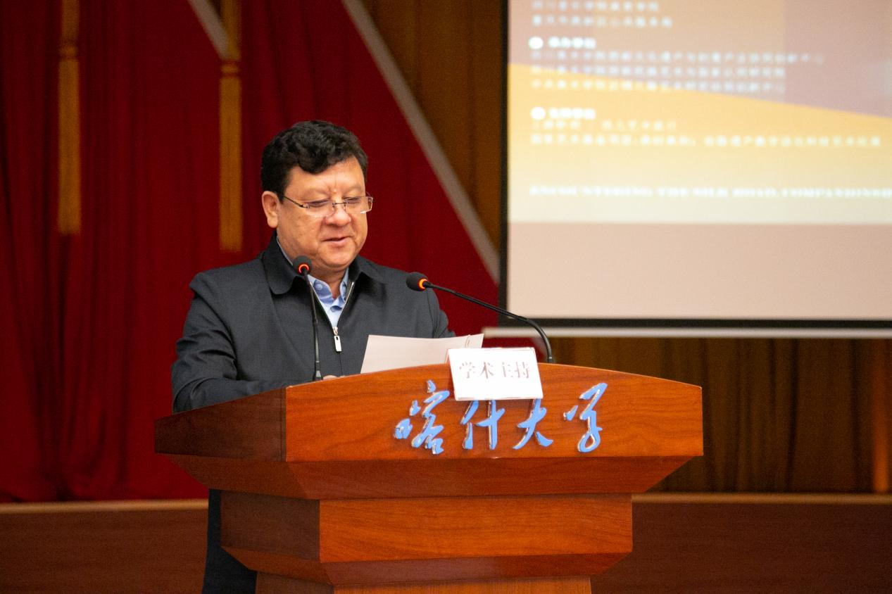 喀什大学美术与设计学院特聘院长薛云祥教授致辞。他指出:在历史上喀什是古丝绸之路交通要塞,是中外商人云集的国际商铺。今天喀什作为新疆唯一的历史文化名城,集中体现了维吾尔族民俗风情与文化艺术。在一带一路倡议的背景下,朝向未来,喀什将实现国际商贸与文化交流蓬勃的提升,以 为代表的艺术院校选择以喀什为一带一路艺术互鉴计划的起点,为推动新时期民族文化交流、交融与交汇作出了贡献。喀什大学美术与设计学院作为联合主办单位,将努力做好衔接与服务保障工作,积极参与本次艺术活动,拓展师生艺术事业。
