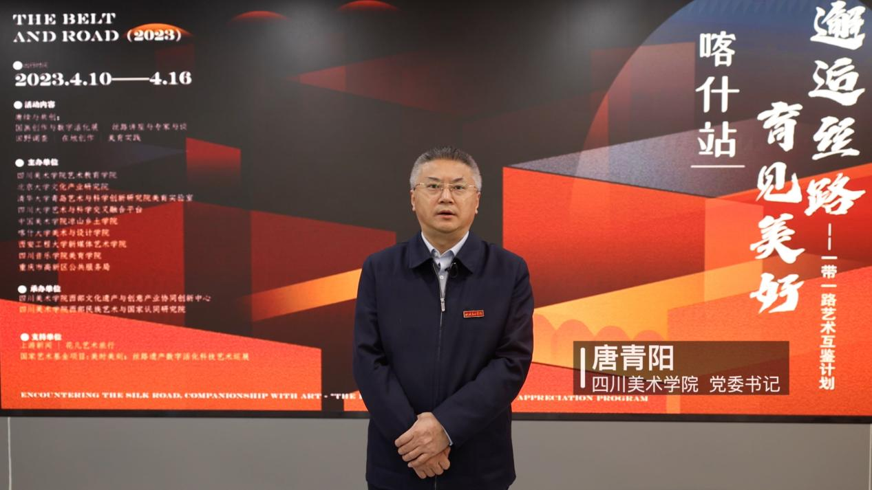 党委书记唐青阳教授在视频讲话中指出:2023年,共建“一带一路”倡议提出十周年。十年来,“一带一路”成为中国人民与世界人民通民心融民意的纽带与动脉。文化艺术,在“一带一路”交流、交往、交融进程中发挥了重要作用。习近平总书记在第三次中央新疆工作座谈会上强调“做好新疆工作是全党全国的大事”,本次“邂逅丝路 育见美好——一带一路艺术互鉴计划”,首站即在喀什举行,正是 和全体参与院校对习近平总书记讲话精神的落实落地。也是以美为媒,促进各民族间文化艺术交流互鉴的重要实践。他指出,喀什工作营,是 和喀什大学携手共进的起点,期待以工作营的开展为契机,深化两校的合作与交流,共同为把喀什大学建设成为新疆一流大学而努力。最后,唐青阳教授代表主办单位,宣布“邂逅丝路 育见美好——一带一路艺术互鉴计划”正式启动。