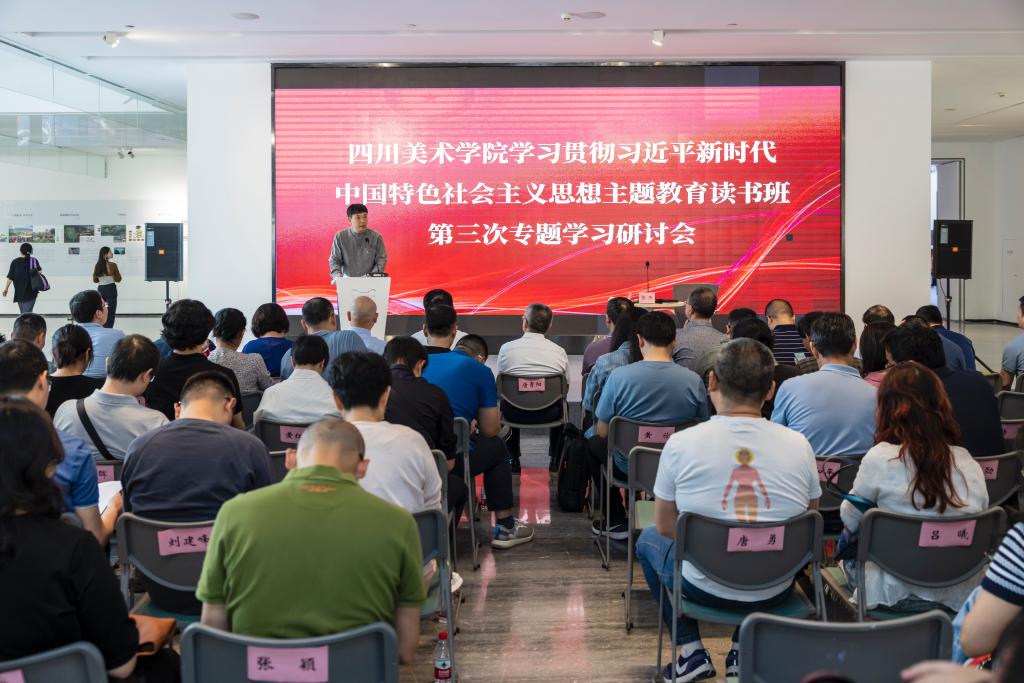 按照学校学习贯彻习近平新时代中国特色社会主义思想主题教育读书班总体安排,4月21日,学校主题教育读书班走出会议室、走进美术馆,开展了一次别开生面的专题集中学习研讨。学校党委书记唐青阳等全体在家校领导、处级领导干部参加。市委巡回指导十六组副组长王启海、副组长温万光及组员刘南英、余春生、王辉同志到场全程指导。党委常委、副院长段胜峰主持研讨。