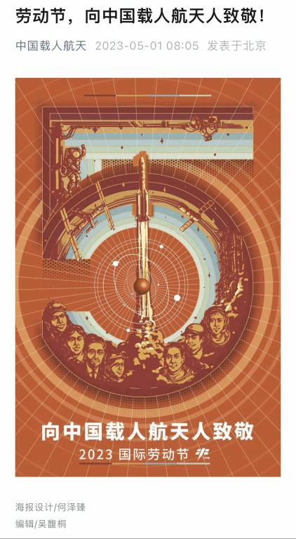 5月1日,中国载人航天工程官方公众号发布了由 设计学院学生何泽臻设计的劳动节海报,向中国载人航天人致敬。