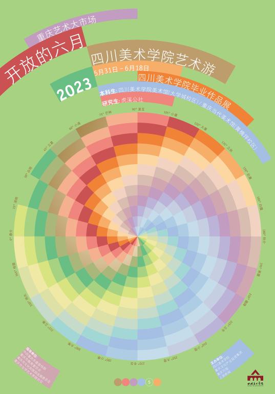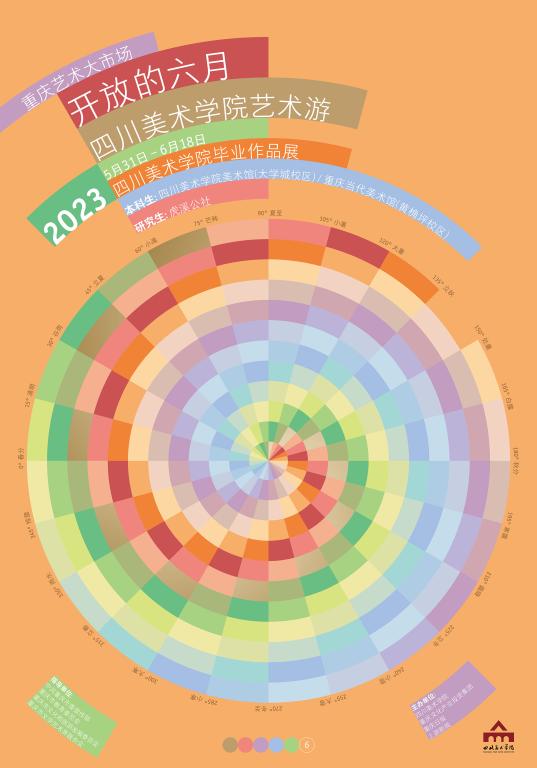 2023年5月31日,“重庆艺术大市场-开放的六月—— 艺术游”2023毕业生作品展,在 大学城校区、黄桷坪校区同时开幕,并于6月1日起正式面向公众开放。本科毕业生作品展分别在 美术馆(大学城校区)、重庆当代美术馆(黄桷坪校区)展出,将持续至6月18日。研究生作品展分两个阶段展出:6月1日至6月8日,展出中国画与书法学院、造型艺术学院、艺术教育学院、实验艺术学院、影视动画学院、艺术人文学院(6月18日闭幕)共256名研究生的毕业作品;6月13日至6月21日,展出设计学院、建筑与环境艺术学院200名研究生的毕业作品。