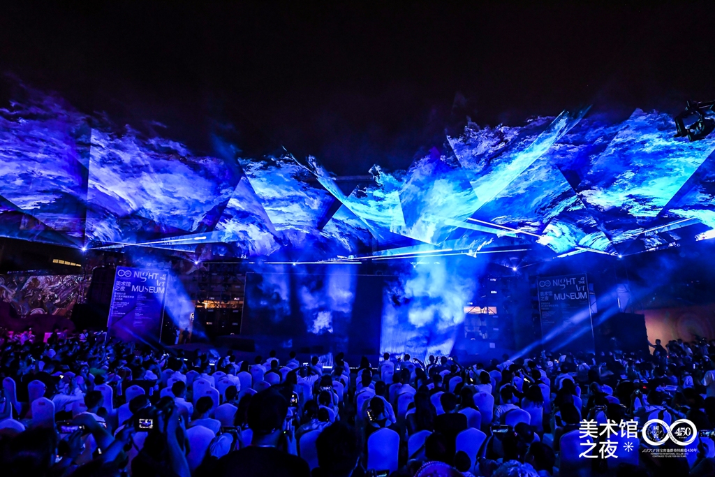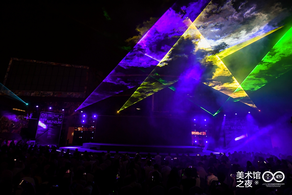 最后, 照明艺术研究所带来了以“遇鉴Young光”为主题的光影秀,将艺术表现、现代科技与建筑空间相结合,充分展现了空间、色彩、光影、音乐之间的艺术张力与极致美感,以光影秀点亮美术馆、点亮城市,点亮青春与梦想!