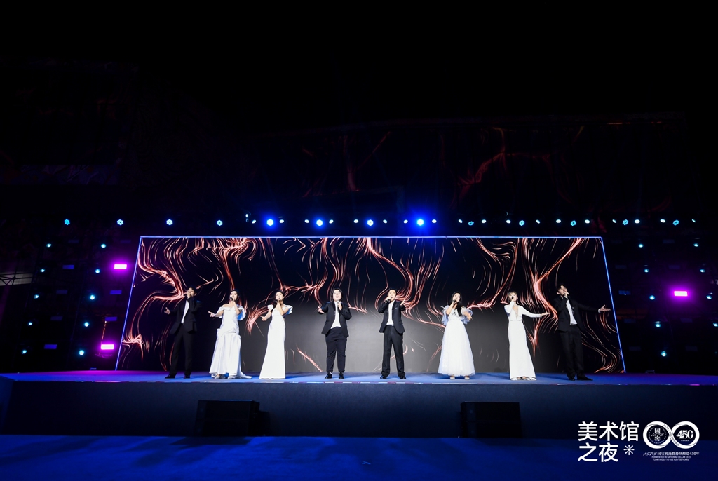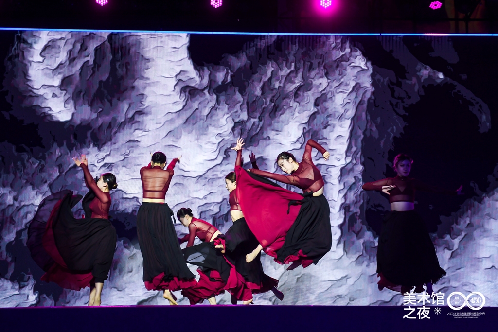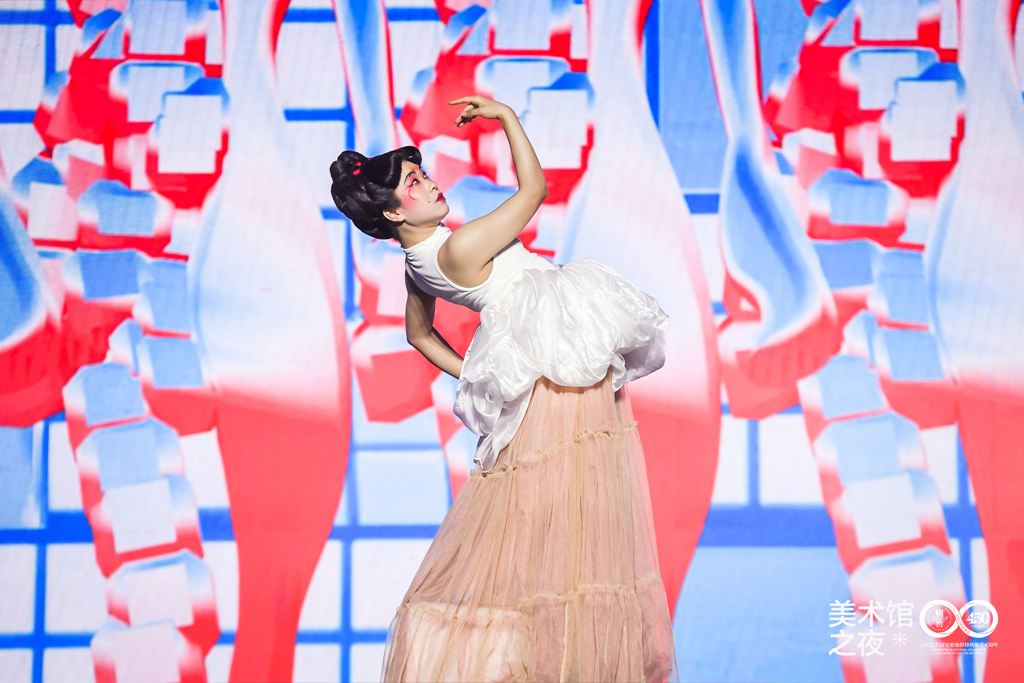 四川音乐学院流行音乐学院首先带来歌唱表演《青春》。《青春》的歌词文本取自李大钊先生1916年在《新青年》杂志上发表的文章《青春》。在歌曲创作方面,用跨度平稳的音程度数搭建起易于引起听觉共鸣和高传唱度的旋律线条,曲情与词意有机结合、相辅相成。此次“美术馆之夜”特邀四川音乐学院参与演出,旨在推动成渝双城文化联动与加强校际交流。此外,四川音乐学院还带来了歌唱表演《我的天空》、现代舞《Believer》、非遗融合舞蹈《小皮影》,让我们看到了传统与现代的文化交融与碰撞。
