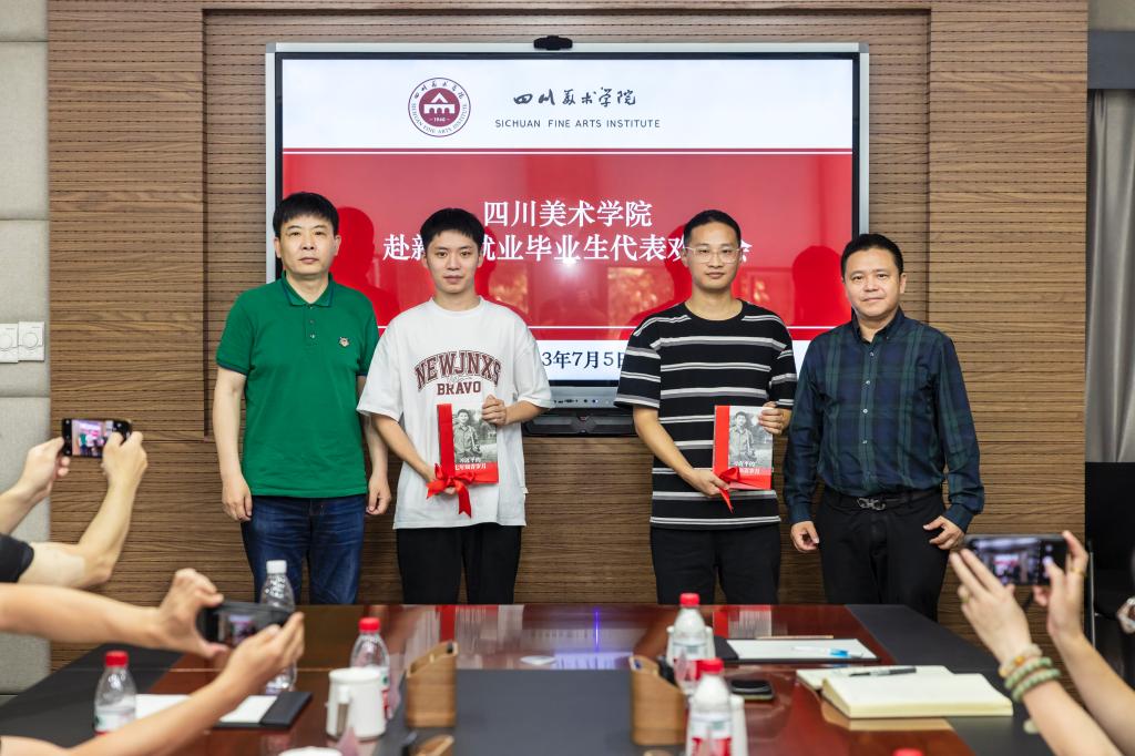 庞茂琨指出,两位同学充分体现了川美毕业生强国建设、民族复兴的青年担当。庞茂琨希望两位同学充分发挥艺术优势和中华美育精神,促进新疆文化事业繁荣和文化产业发展,更好满足新疆人民美好生活的需要;并祝愿两位同学事业有成、生活幸福,成就更为丰满、健全的艺术人生。