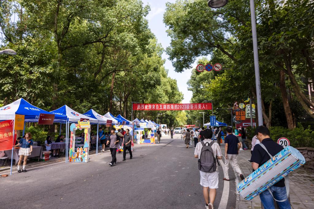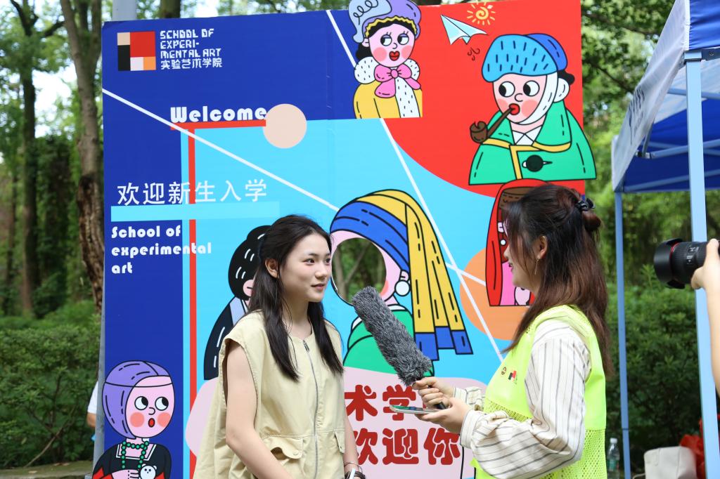 新生报到处,实验艺术学院摄影专业一位新同学说:“初到学校,没有认识的人结伴同行,希望能在这里找到无话不谈、志同道合的伙伴,现在已经迫不及待地想要结识新舍友、新同学了!”