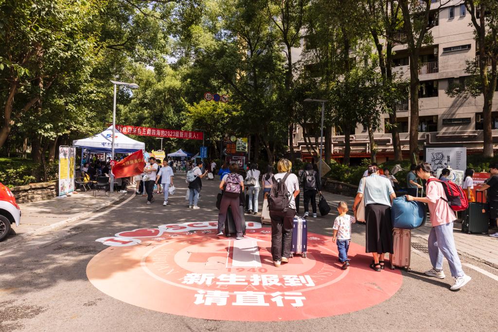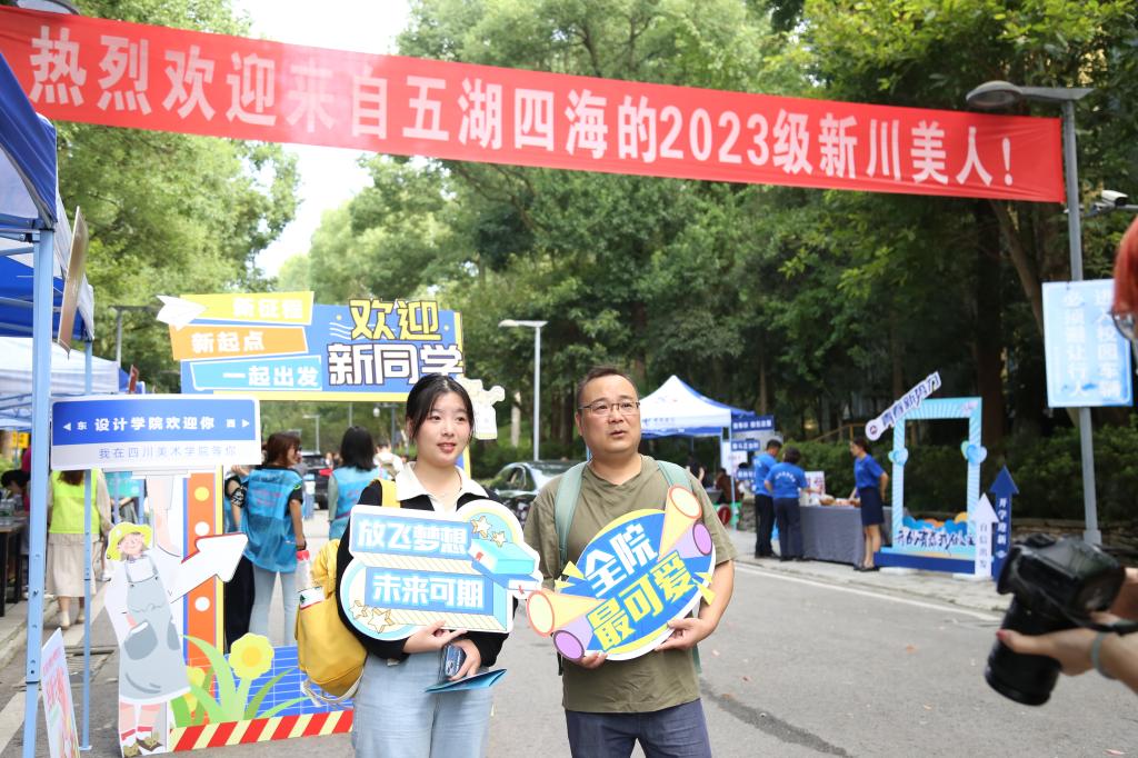 大学城校区南门、西门,新生、家长、车辆络绎不绝。川美2023级新同学和家长们,迈着轻快的步伐,一脸憧憬地进入校园报到。“家长您好,请问您到几号楼?”“同学你好,请问是哪个学院的新生?”学校工作人员热情地询问着新生及家长。