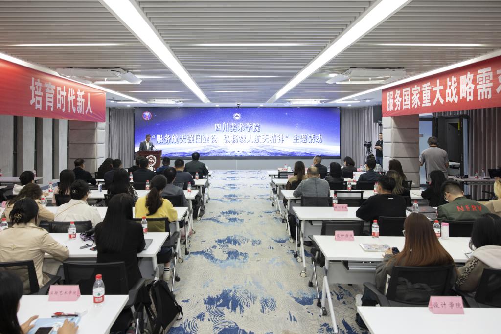 段胜峰作主旨发言。他指出,谭昊瑜的设计作品——神舟十七号载人飞行任务标志,既是学生个人扎实的专业素养和突出的专业能力的集中体现,更是我校长期以来重视科研创作、创新人才培养模式的生动缩影。近年来,我校设计学科突破以传授技能为目标的培养模式,将“以人民为中心”的价值理念熔铸到设计人才培养的全过程,我校学生也更加主动关心国家和社会需求,积极探索设计服务国家重大发展战略、服务人民和社会需求的途径,逐步培养出了一批具有“泥土味”“人民情”“中国心”的人民设计师。 将在习近平文化思想的引领下,继续弘扬载人航天精神,用更多优秀的作品为我国航天事业的永续发展提供源源不断的设计力量,为实现中华民族伟大复兴贡献川美智慧和力量。