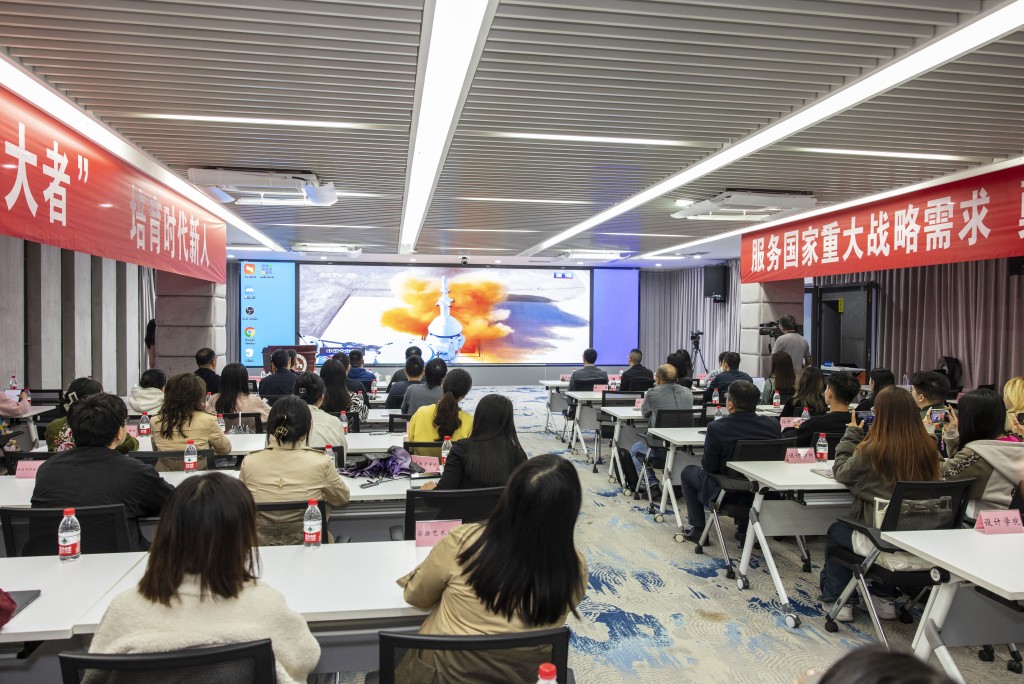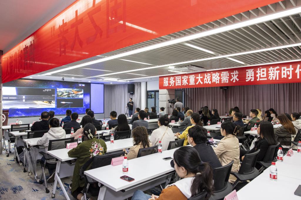 上午9点,师生代表们齐聚虎溪校区第五会议室,怀着崇敬与激动的心情,集体观看了神舟十七号载人飞船发射升空的现场直播。
