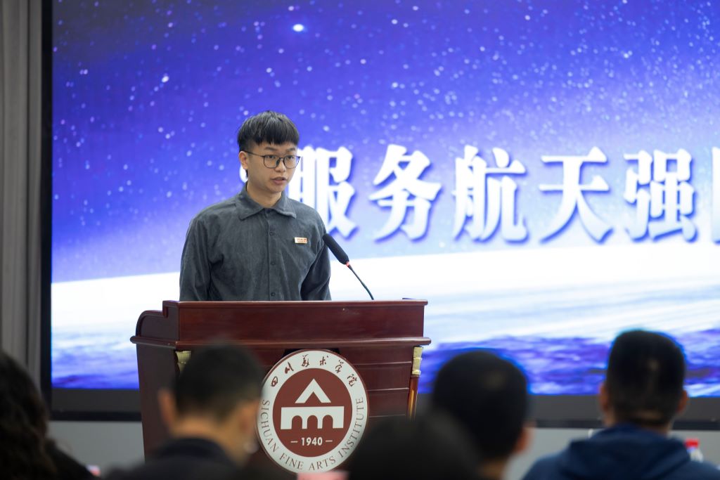现场气氛热烈,师生们都沉浸在无比激动、喜悦和自豪之中,为祖国的航天事业感到骄傲。我校参与航天航空重大设计任务的师生代表:设计学院教授向海涛、设计学院教师罗杰、设计学院教师胡永攀、影视动画学院教师杨承颖、设计学院2022级产品设计专业研究生梁炯光,以及学生干部代表史君怡同学依次发言,分享他们的经历与感悟。