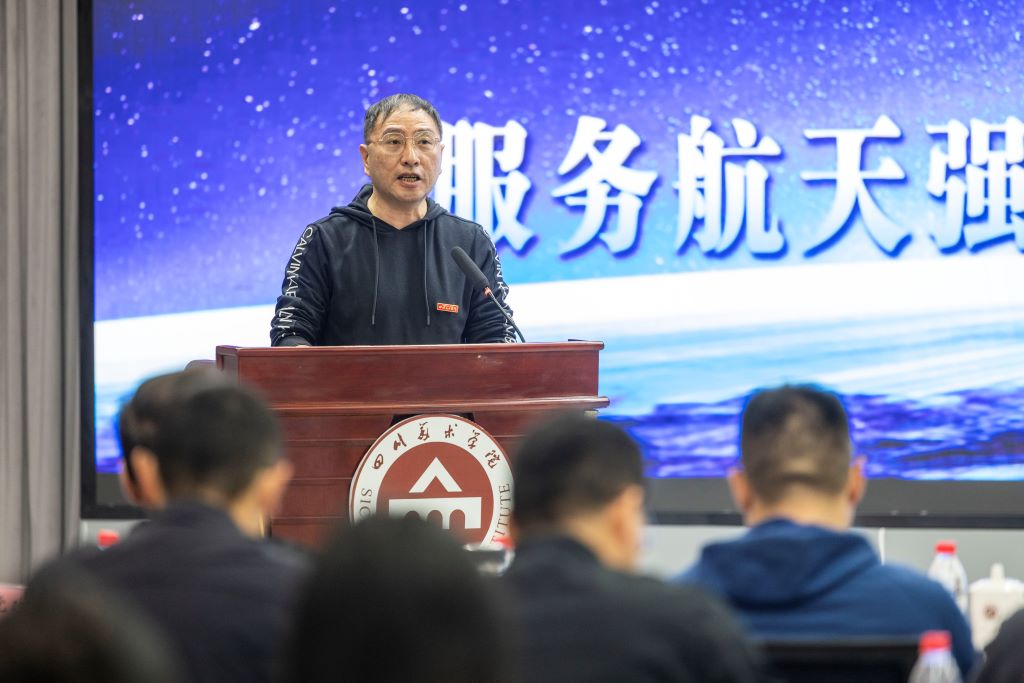 向海涛谈到,2023年2月15日,中国载人航天工程办公室面向社会公开征集2023年度载人航天飞行任务标识。这是我国载人航天工程历史上首次面向全社会公开征集任务标识。征集公告发布后,我们也第一时间成立了覆盖视觉传达设计、工业设计、数字媒体艺术等专业的教师及学生精英设计团队。在十多天的创作过程中,克服时间紧、任务重等困难,历经多次任务分析、方案的修改讨论、集体审稿,最终形成并提交了36套、共108枚标识设计方案。师生们在创作中激发创意、大胆创新、任劳任怨、反复修改,充分彰显了川美设计学子扎实的设计功底和吃苦耐劳、勇于进取的精神。