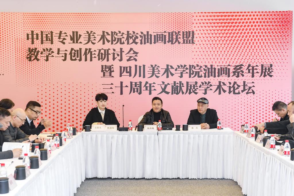 第一场论坛题目是“学院与现场——中国专业美术院校油画专业教育与川美案例”,发言嘉宾有 校长庞茂琨, 二级教授、原副校长张杰,天津美术学院油画系系主任袁文彬、湖北美术学院绘画学院院长徐文涛、广州美术学院绘画艺术学院副院长兼油画系系主任刘可、西安美术学院油画系系主任杨洋、 教授俞可、 美术馆馆长何桂彦。嘉宾们对当前学院绘画教育和川美油画的学术特点进行深入阐述和探讨。
