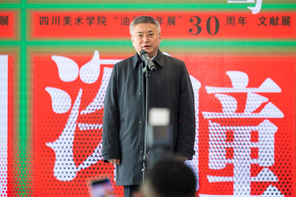 庞茂琨代表 向莅临本次开幕式的嘉宾、学者表示热烈欢迎。他从个人在川美油画系求学的经历谈起,简要勾勤出川美油画教学的改革历程,对油画系三十年来所取得的成就给予充分肯定。