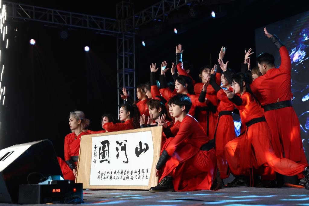 在“焕 国韵新风”篇章,来自中国画与书法艺术学院的乐队表演《不再犹豫》《青丝》点燃开场氛围;来自造型艺术学院的《元夕之约》与街舞社的《耀》以灵动的国风舞蹈展现了我校学生的蓬勃朝气与青春风采;艺术人文学院带来的情景剧《博物馆奇妙夜》以独特的创意,引领观众走进了一个幻想世界;影视动画学院带来的《山河图》以充满力量与美感的集体舞蹈向观众们展现了一幅生动的山水画卷;公共艺术学院的集体舞蹈《流光叙》通过优美流畅的舞姿展现了青年学生向往未来、砥砺奋进的热忱之心。