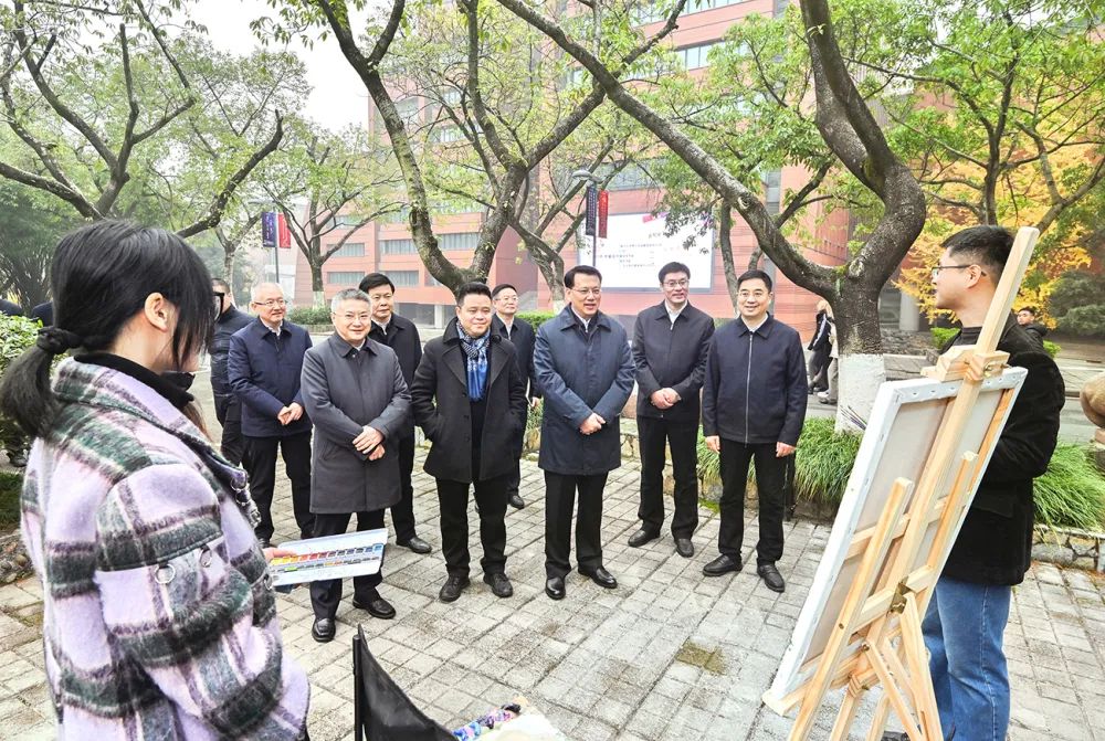 培养造就了许多美术大师、推出了大批艺术精品。走进当代美术馆,袁家军听取学科建设和人才培养情况介绍并观看美术作品展。他指出,重庆大山大水的壮美风光为美术创作提供了广阔空间,现代化新重庆建设的大场景为艺术创作提供了丰富题材,美术工作者要兼收并蓄,深入生活实际,打磨创作更多优秀作品。在考察川美设计专业产教融合成果时,袁家军指出,设计要与社会发展、产业发展相结合,更好服务城市形象提升,满足群众高品质生活需求。工业设计是一座富矿,川美要发挥自身优势,推动美学与现代工业发展相融合,赋予工业品更多艺术气质和时代内涵。看到师生正在进行写生创作,袁家军同大家交谈,希望青年学子珍惜新时代、拥抱新时代,坚定理想信念,勤奋学习、大胆创新,在书写艺术创作的精彩华章中展现中国气派。走进川美照明艺术研究院,袁家军指出,川美是重庆文化的“金名片”,要推动学科建设与时代发展、城市发展同进步,促进艺术创作与现代技术相结合,赋予作品更多技术感、艺术感和时代感,在助力文化强市建设中发挥重要作用。