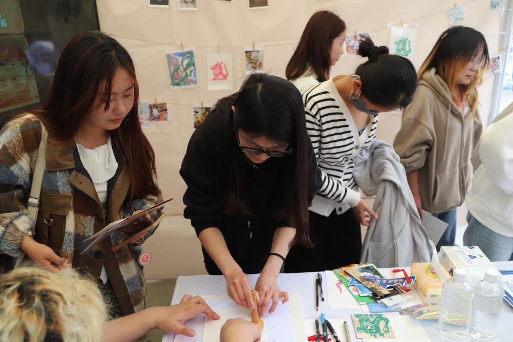 “川美创意市集”是校学生会在校团委指导下打造的精品学生创意项目,自2009年创办以来,一直以支持在校大学生创新创业发展,展示川美的原创精神、助推学校的“双创”工作为宗旨。为充分展示项目特色及成果,项目组成员在校团委老师的指导下做了充分的准备,从海报、PPT制作,到展位视觉、展陈设计均得到现场观众及观察员的一致好评,现场设置的“版画DIY”和“身体彩绘”互动环节更是深受观众热捧,观众为了获得一个体验机会,在展位前大排长龙。为期两天的展示活动吸引了上千名观众及同仁驻足观看、交流、体验,在活动现场掀起了一股别样的艺术风,全方位展示了川美创意市集的原创性及艺术性。