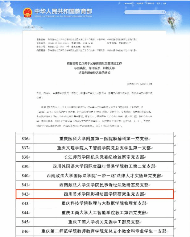 近日,教育部思想政治工作司公布了第四批新时代高校党建示范创建和质量创优工作遴选结果,我校影视动画学院研究生党支部成功入选第四批“全国党建工作样板支部”培育创建单位,这是我校获批的第一个全国党建“双创”工作培育创建单位。