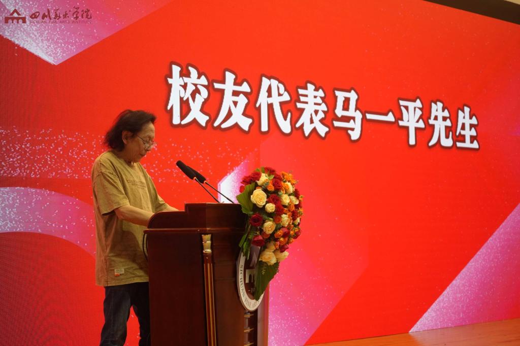 1954级校友马一平代表广大川美校友对校友总会的成立表示祝贺并致贺词。