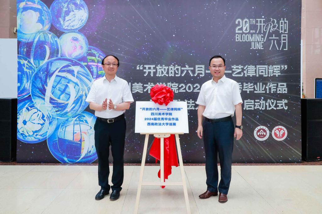 6月13日,“开放的六月——艺律同辉” 2024届优秀毕业作品西南政法大学巡展在该校渝北校区举办启动仪式。西南政法大学党委副书记、校长林维, 党委常委、副院长张勇华出席。 党委常委、党委宣传部部长贾安东以及川美教务处、美术馆、中国画与书法艺术学院负责人,西南政法大学党委宣传部、教务处、图书馆、校团委等职能部门的负责人,两校师生代表等参加活动,启动仪式由西南政法大学党委副书记刘革主持。