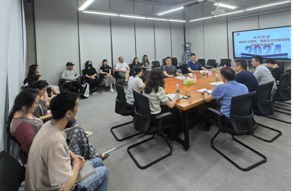王朝刚充分肯定了图书馆在文献资源、空间建设和学科服务等方面的工作,并对未来工作提出指导意见。他指出,图书馆要以“最美的空间”“最美的服务”为目标,围绕学校学科建设和发展进一步加强学术研究支持体系建设;要加强图书馆学术研讨、阅读活动、文化建设实践与学校整体学术体系的融合度,持续为学校师生学术研究提供新质服务;要健全特色文献资源库工作,明确资源遴选标准,扎实推进建设具有川美辨识度的特色专题资源库。他强调,在安全管理方面,须从意识形态和消防安全两个方面严格把关;在人才队伍建设方面,要聚焦学校办学定位和“国内一流、国际知名”的高等美术院校建设目标,以问题为导向,深入研究、通盘考虑,进一步打造图书馆人才梯队。