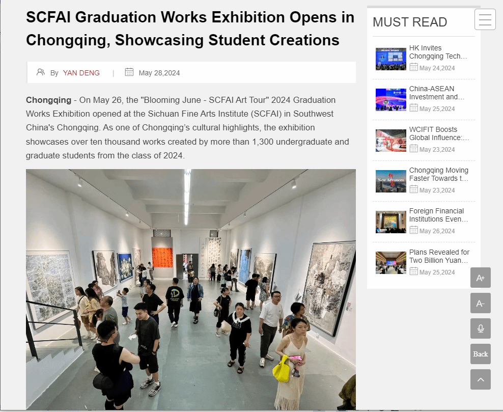 注重中外融通,提升国际传播效能。为用好各方面资源和力量开展国际传播,全面提升国际传播效能,本次活动邀请中央广播电视总台、国际在线重庆频道和西部国际传播中心等加入到宣传报道中,以“开放的六月”为主题,以精品力作为媒介,把我校系列活动亮点和国外受众想听的结合起来,利用推特、脸书、央视外语频道等多种渠道宣介 “开放的六月”系列活动,使我校毕业作品展更多为国际社会和海外受众所认同,增强本次活动国际传播的影响力和实效性。