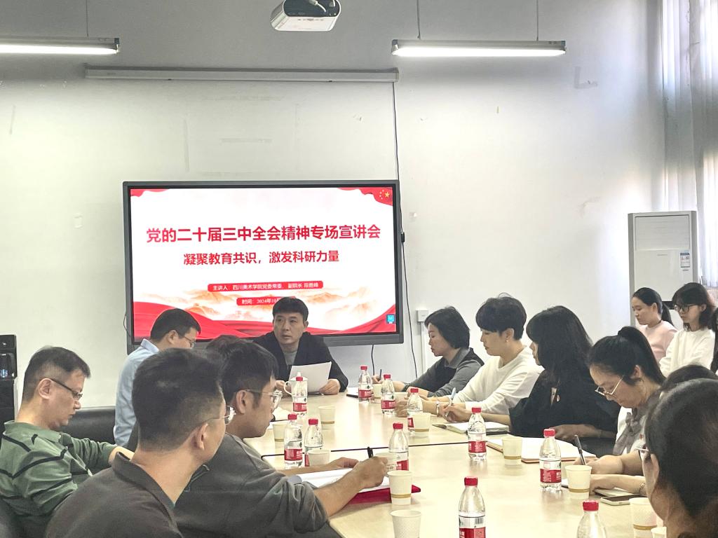 10月16日,学校党委常委、副院长段胜峰向造型艺术学院和中国画与书法艺术学院师生宣讲党的二十届三中全会精神。