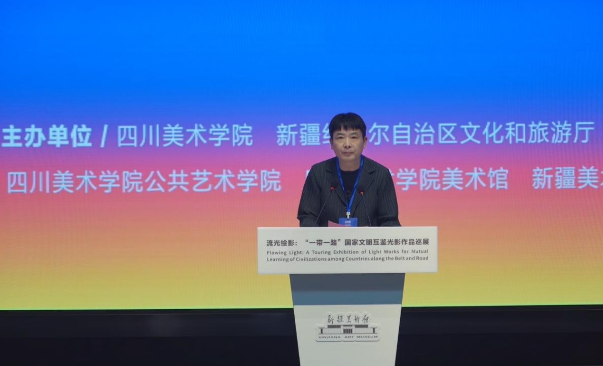 10月24日,国家艺术基金2024年度传播交流推广项目“流光绘影:‘一带一路’国家文明互鉴光影作品巡展”在新疆美术馆开幕。 党委常委、副校长段胜峰,新疆维吾尔自治区文化和旅游厅党组成员、新疆艺术剧院党委书记蔡晓荣出席开幕式并致辞,国家艺术基金管理中心副主任张艳致辞并宣布展览开幕。