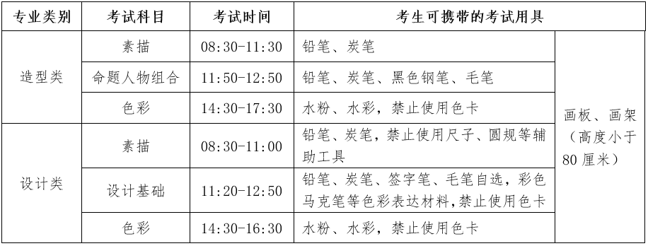 2.符合报考条件的考生,须在造型类、设计类、书法类中选择其中一类报考,不可兼报。