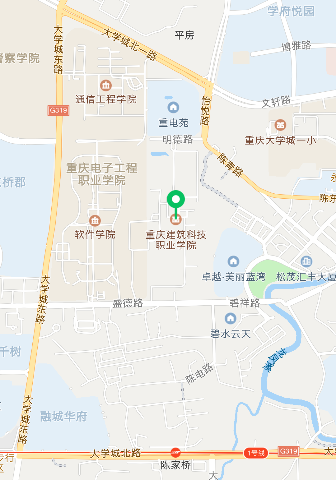 3.乘坐地铁一号线到达微电园站后,转乘276、T115路公交车至怡悦路公交站下车,即到重庆建筑科技职业学院(北门)。