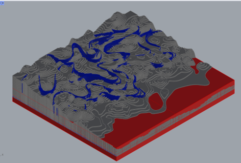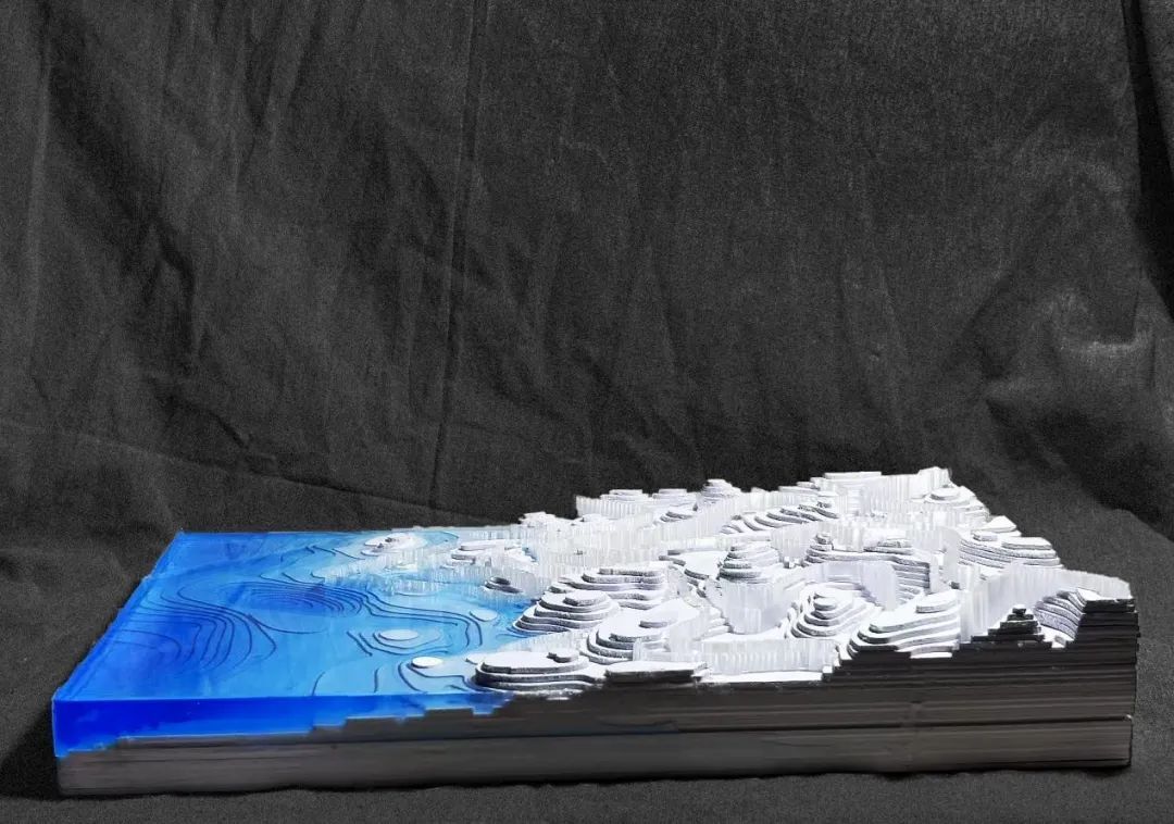 第二阶段:探索水作为催化剂如何塑造影响地形以及地形对水文的反作用。将提取出来的原型进行地形设计,探讨地形与水文关系,并进行场地标准化设计。同时开始制作手工模型和学习mapping图纸制作。