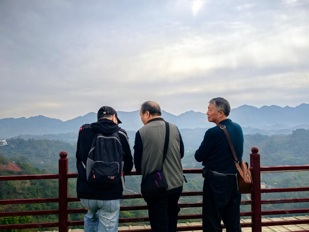 龙丰园农家乐依山而建,满目翠绿,有日出观景台、步行长廊、休闲垂钓塘、娱乐活动室,更有各色鲜花争奇斗艳,果园果实挂满枝头,是一个以“环保”为目标,生态环境优美、生活便捷、热情好客的原生态休息度假农家乐。走进龙丰园,老同志们纷纷被山景所吸引,他们兴致勃勃地漫步在林间小道,欣赏着各色各样的鲜花,谈论着生活中的乐事,不时停下脚步拍照留念,其乐融融。